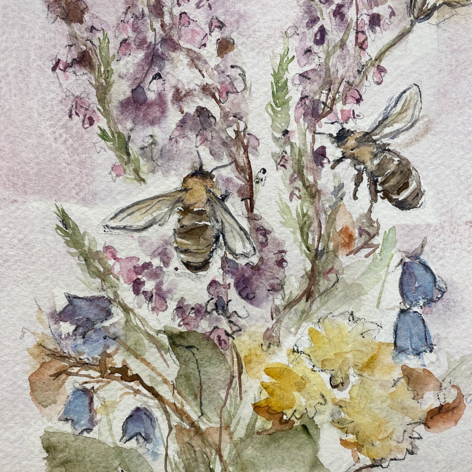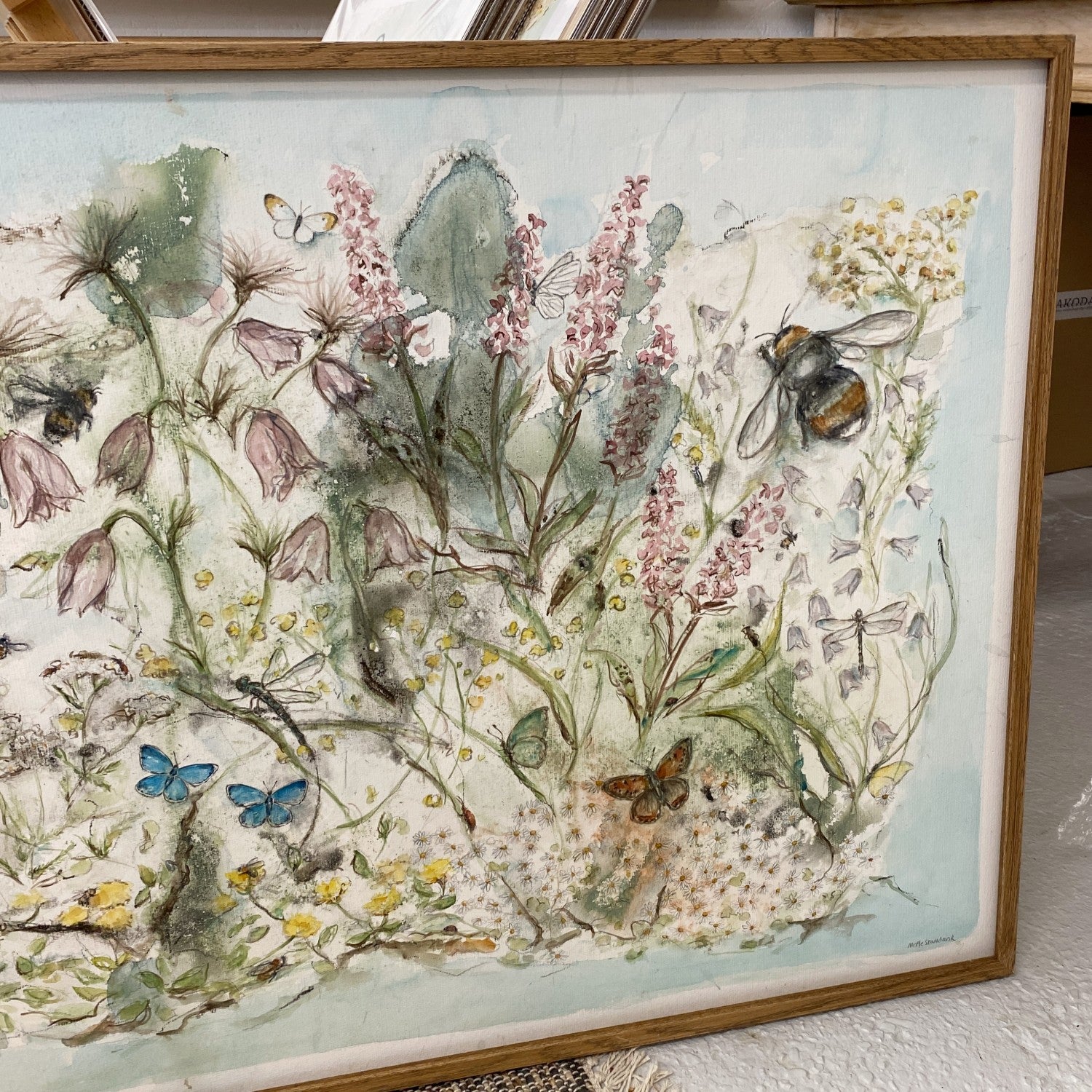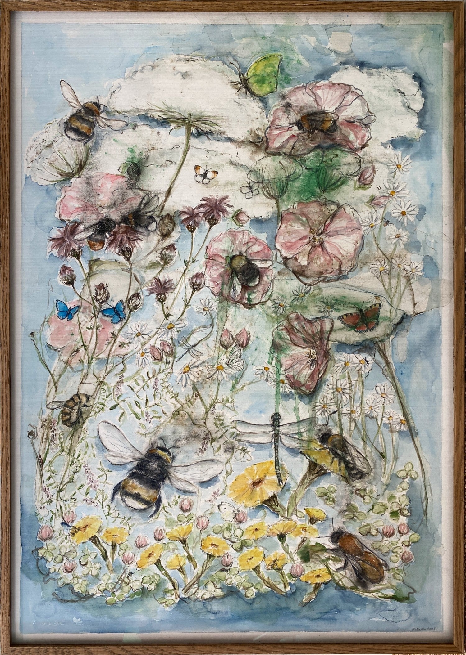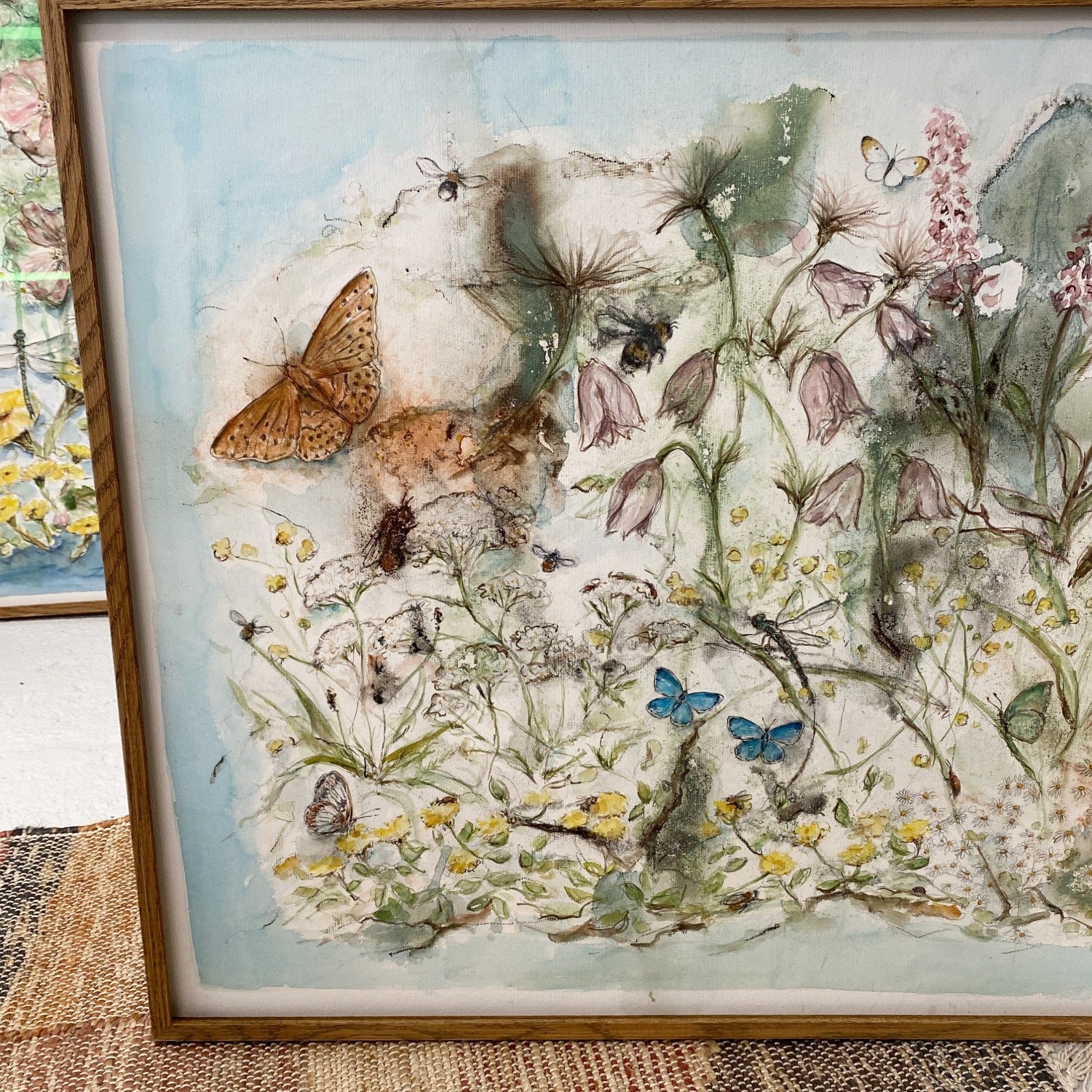 Akvareller fyldt med liv, hvor vilde blomster, sommerfugle og insekter vækker glæde og forbindelse til det vilde.