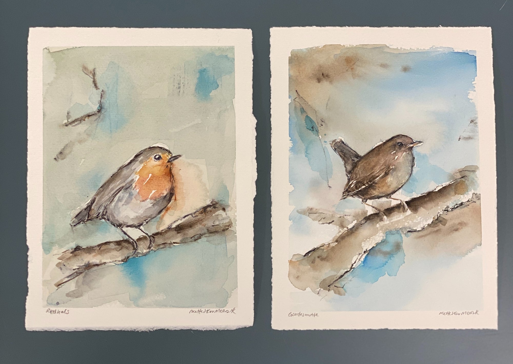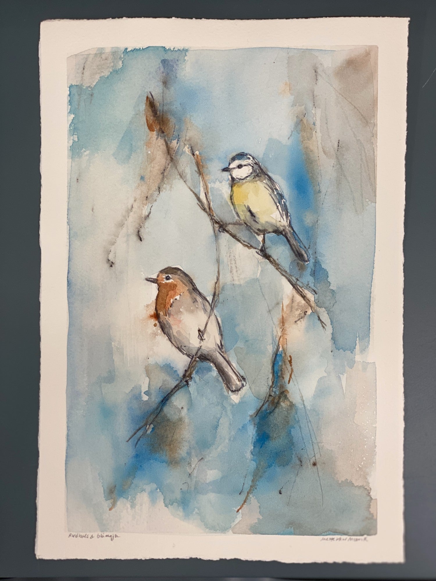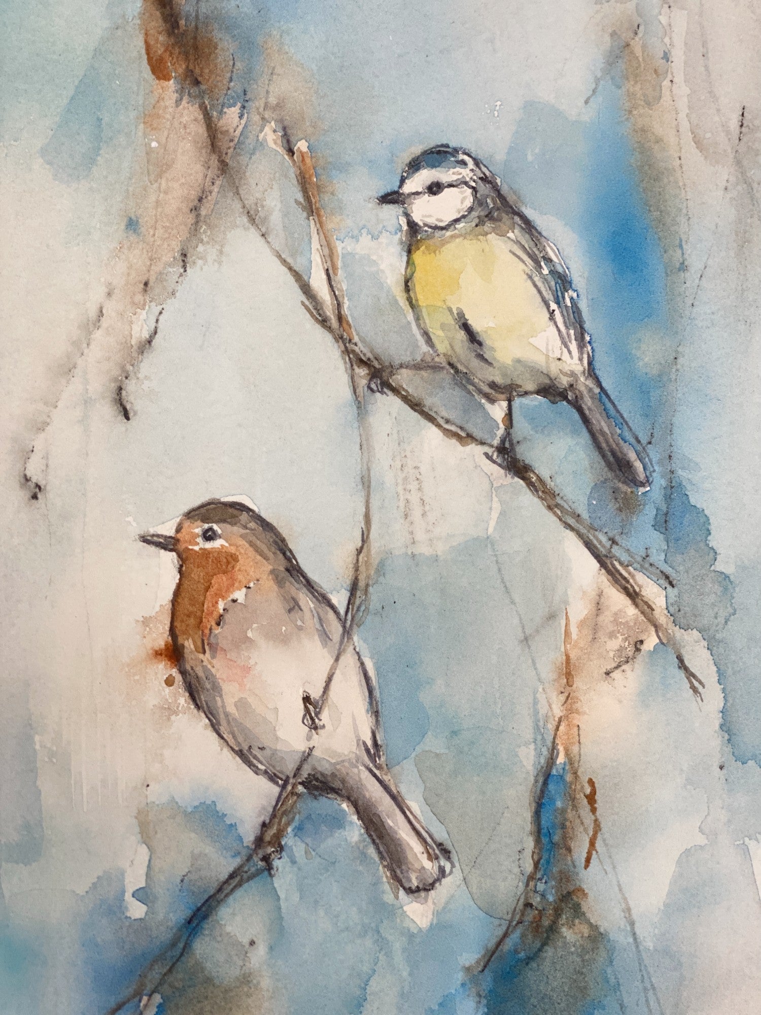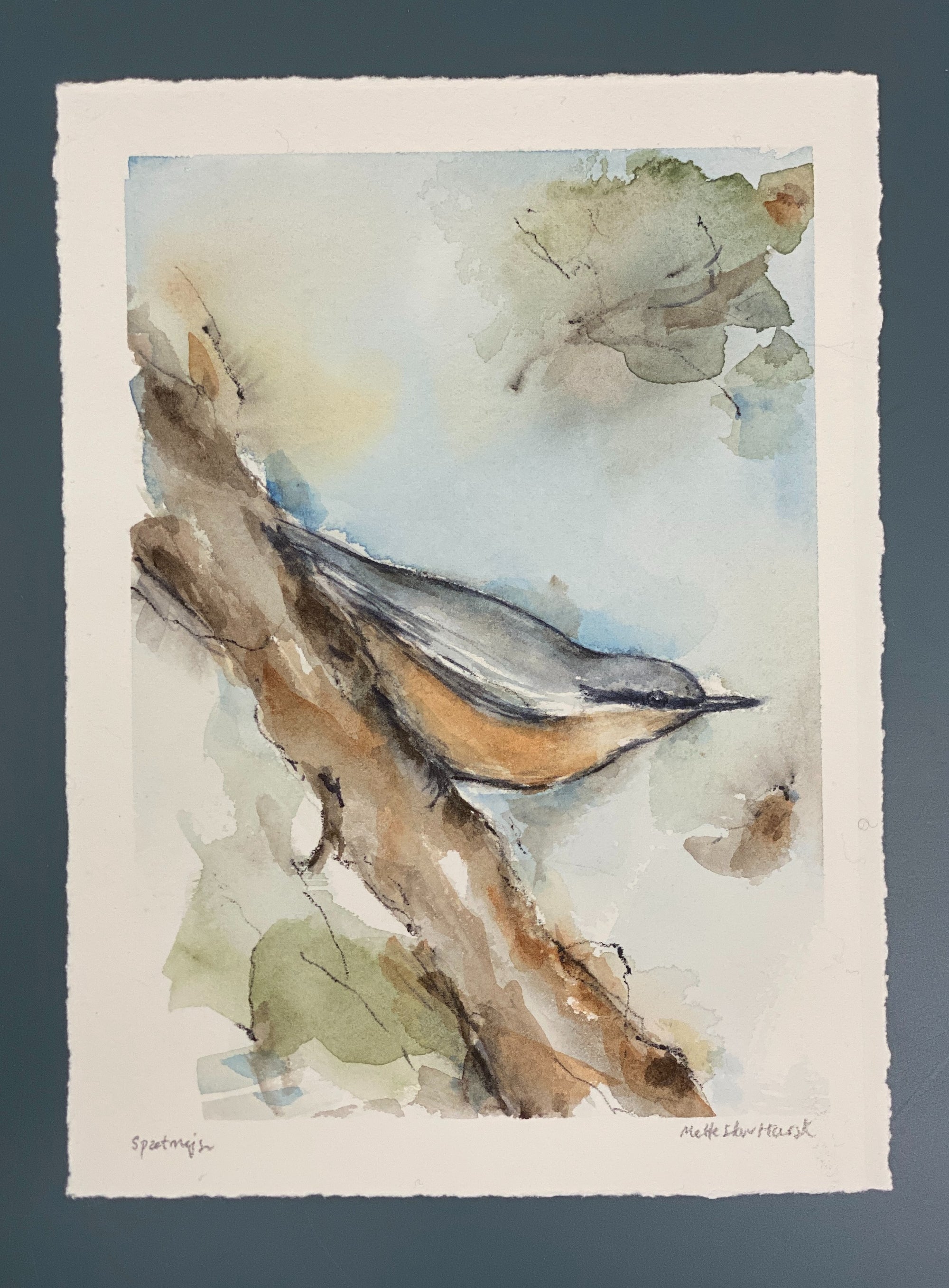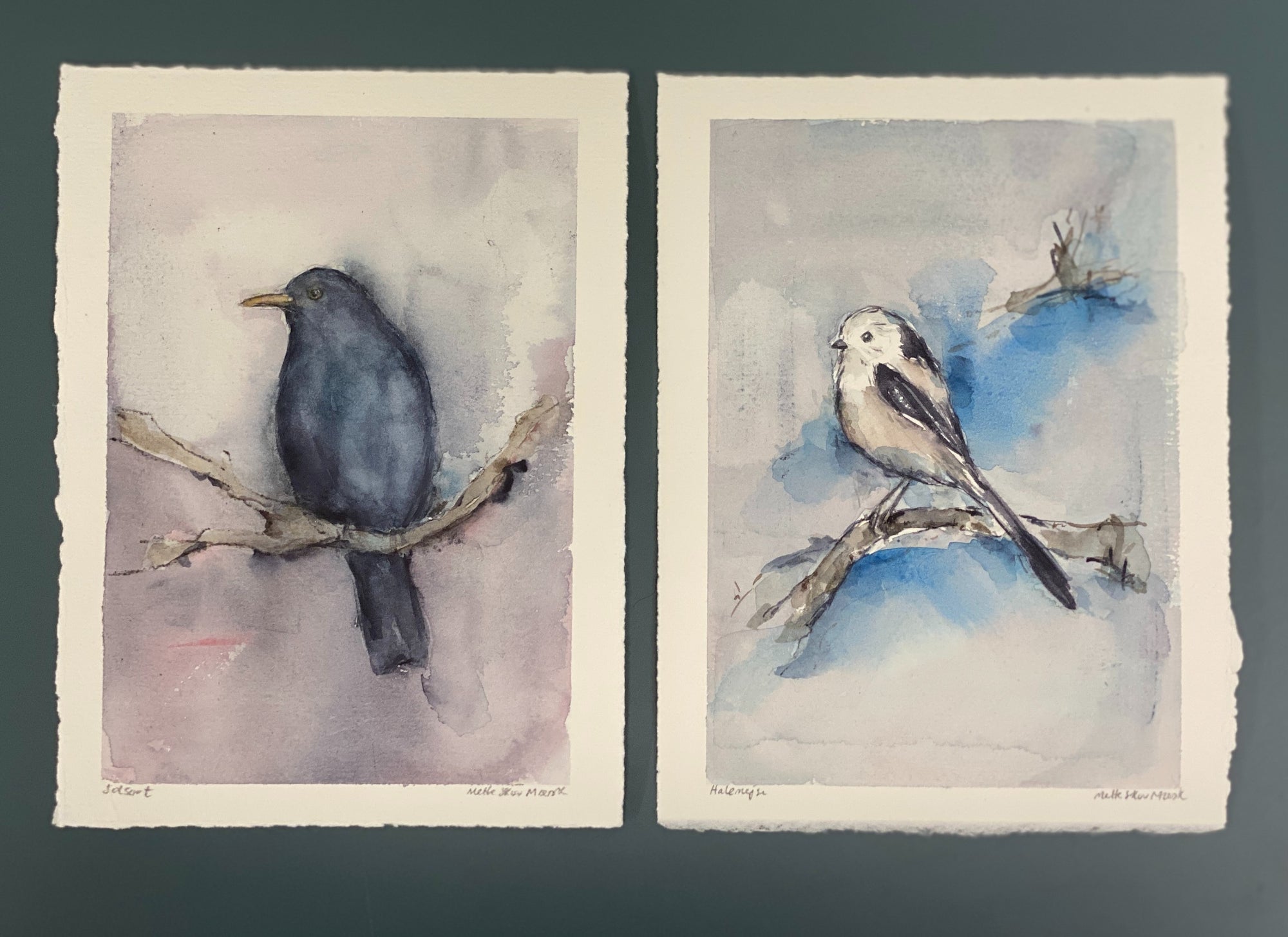 Lette og levende akvareller af nordiske fugle. Poetiske akvareller med lette strøg der skaber med en rolig naturstemning. Flere af originalerne her findes også som kunsttryk.