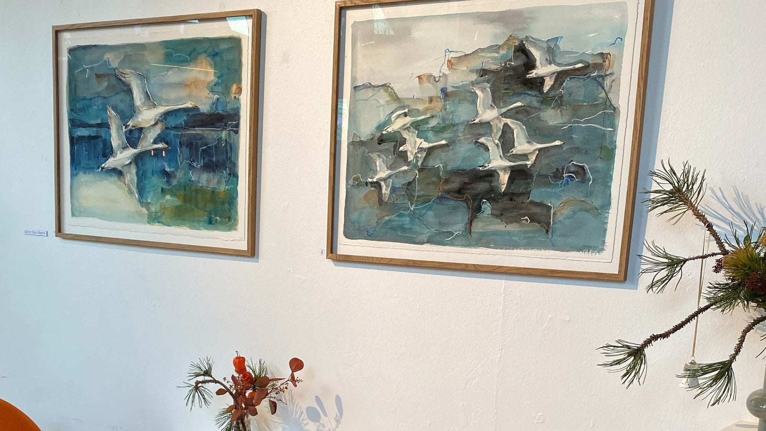 Åbent atelier med mulighed for at se og købe akvareller, kunsttryk og kunstkort med fugle, sommerfugle og vild flora samt færøske landskaber.