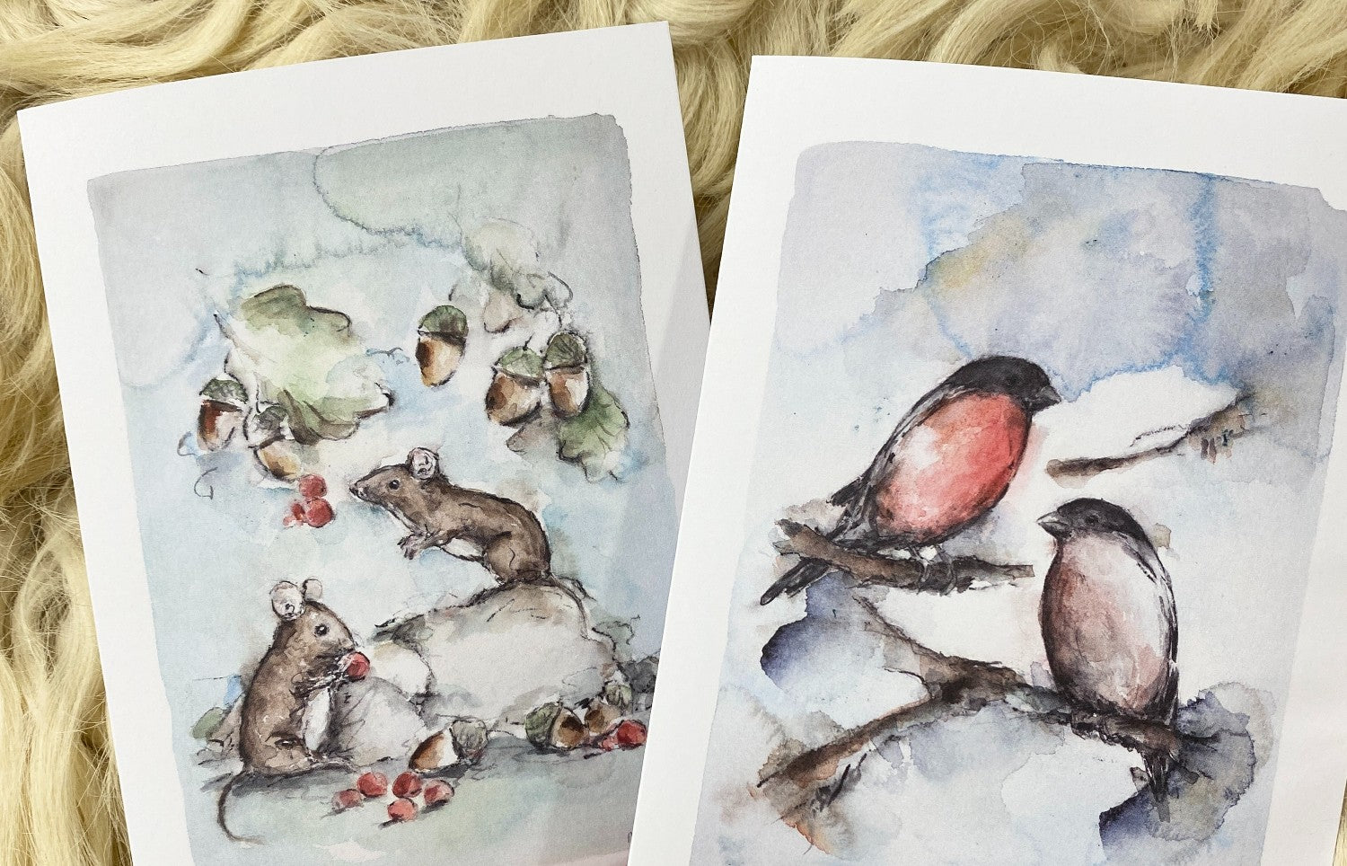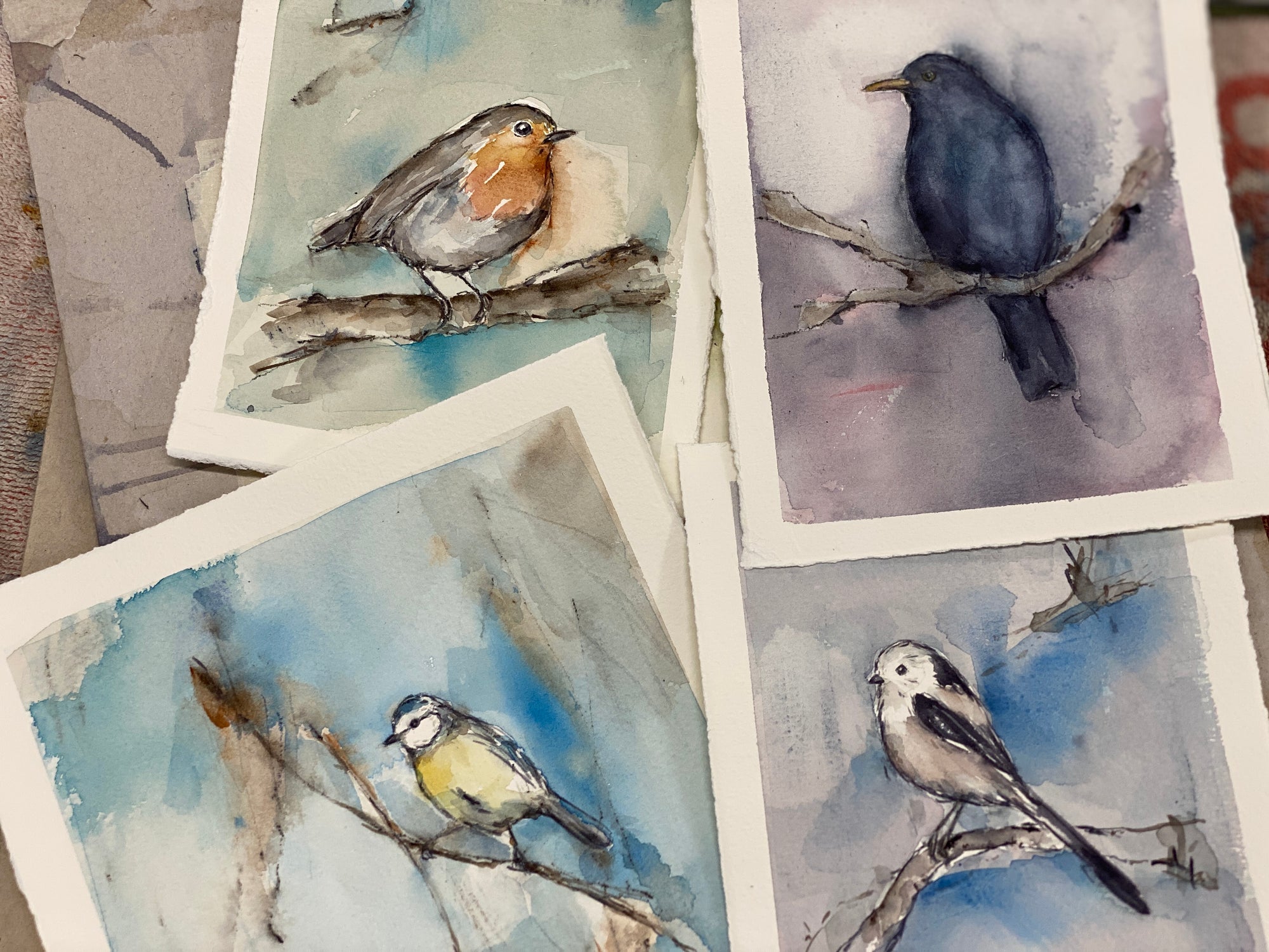 Jeg udstiller mine akvareller med fugle, sommerfugle, vild flora og færøske landskaber – og viser mit nye værksted frem.